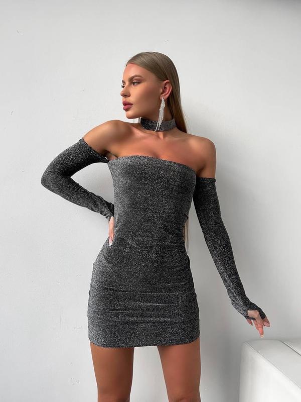Сукня жіноча коротка міні люрексова блискуча нарядна святкова новорічна на новий рік корпоратив гарна чорна сіра срібна романтивна на побачення платя