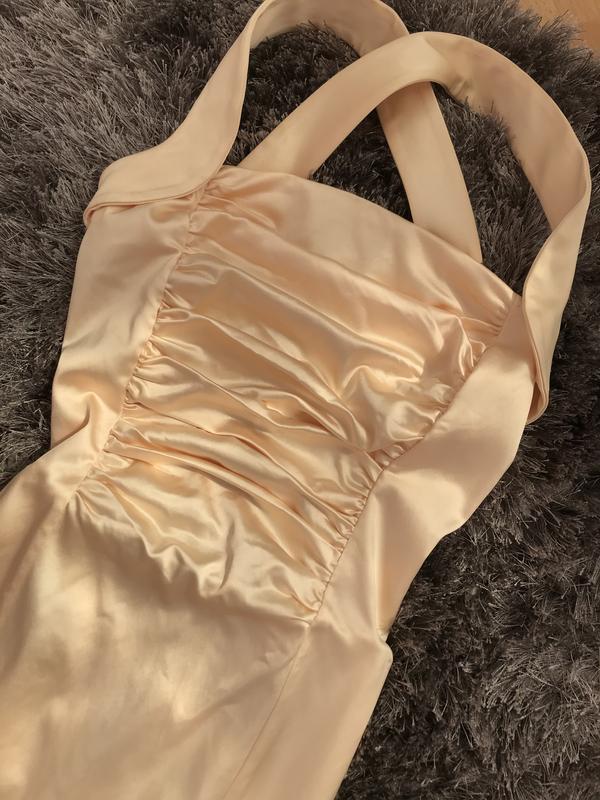 Красиве кремове атласне плаття, дуже приємний матеріал. Довжина сукні - 77,5 см Пів обхват грудей - 34 см Пів обхват талії - 32 см Пів обхват стегон - 53 см