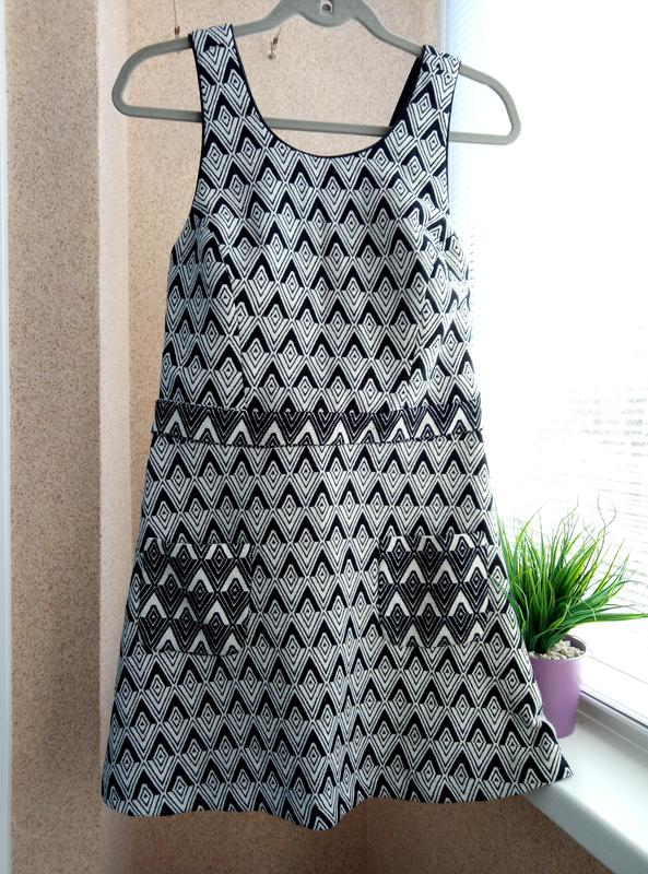 Модний сарафан/плаття з накладними кишенями в геометричний принт. Відмінно буде виглядати під тонкий светрик, футболку, блузи. Ідеальний стан, без дефектів. Вказаний розмір 12, але більше підійде на 8-10.