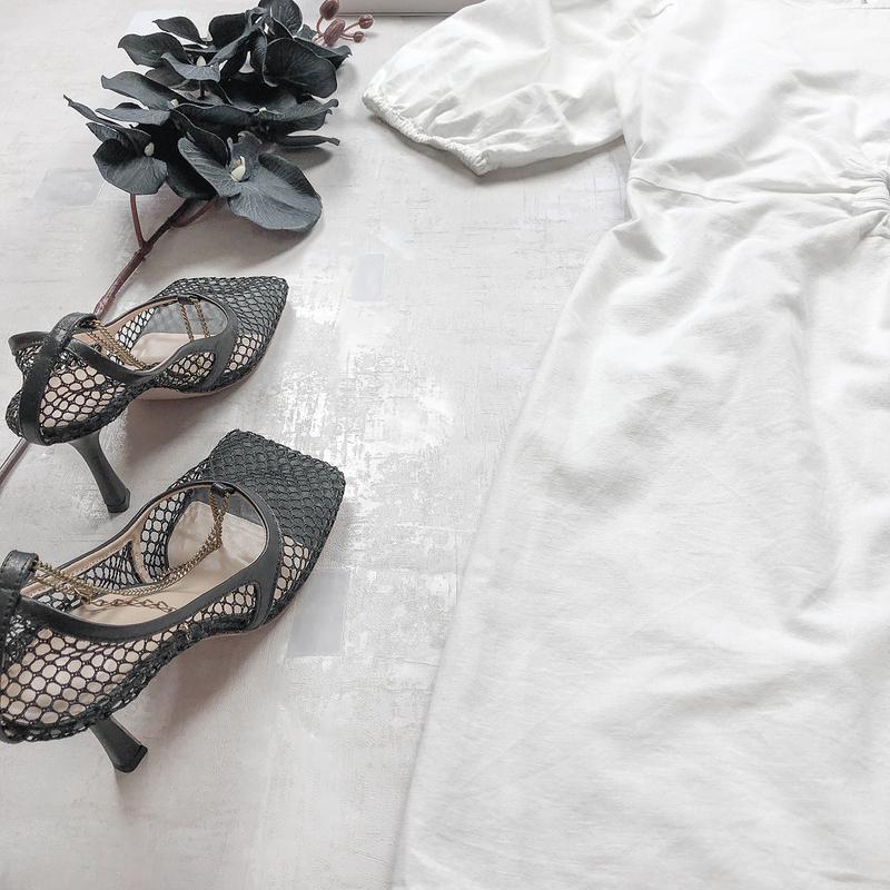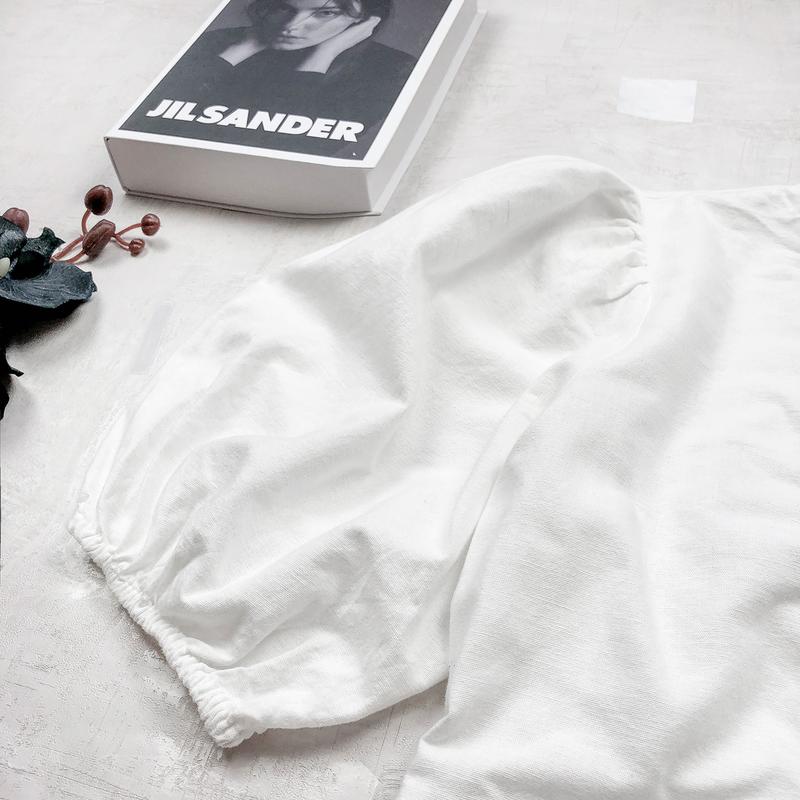 Красива приталена лляна сукня Primark білосніжного кольору з модними пишними рукавами-буфами і стильним квадратиком вирізом на животі.