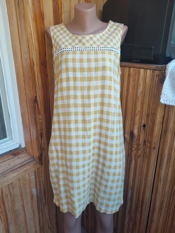 Стильна натуральна сукня в клітинку Льон+віскозаРозмір 12 (L)Стан чудовий!Заміри: довжина 92, груди 50, бедра 54. Вказані напівзаміри.