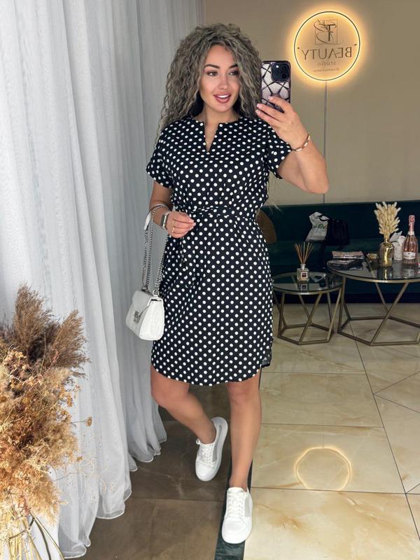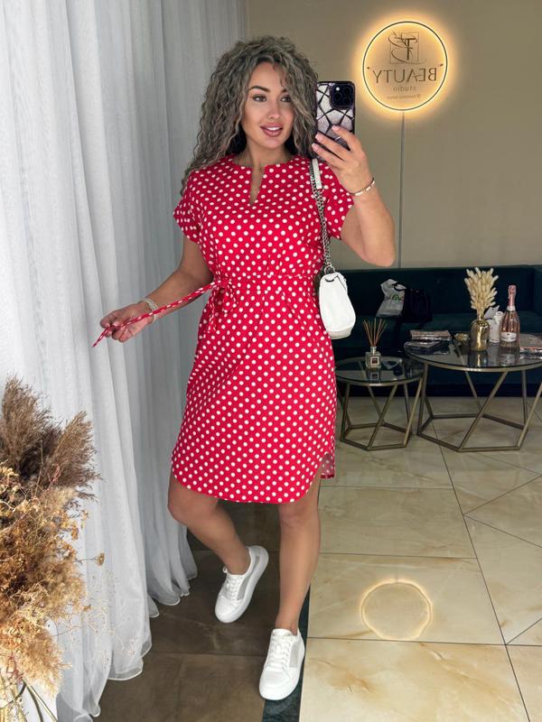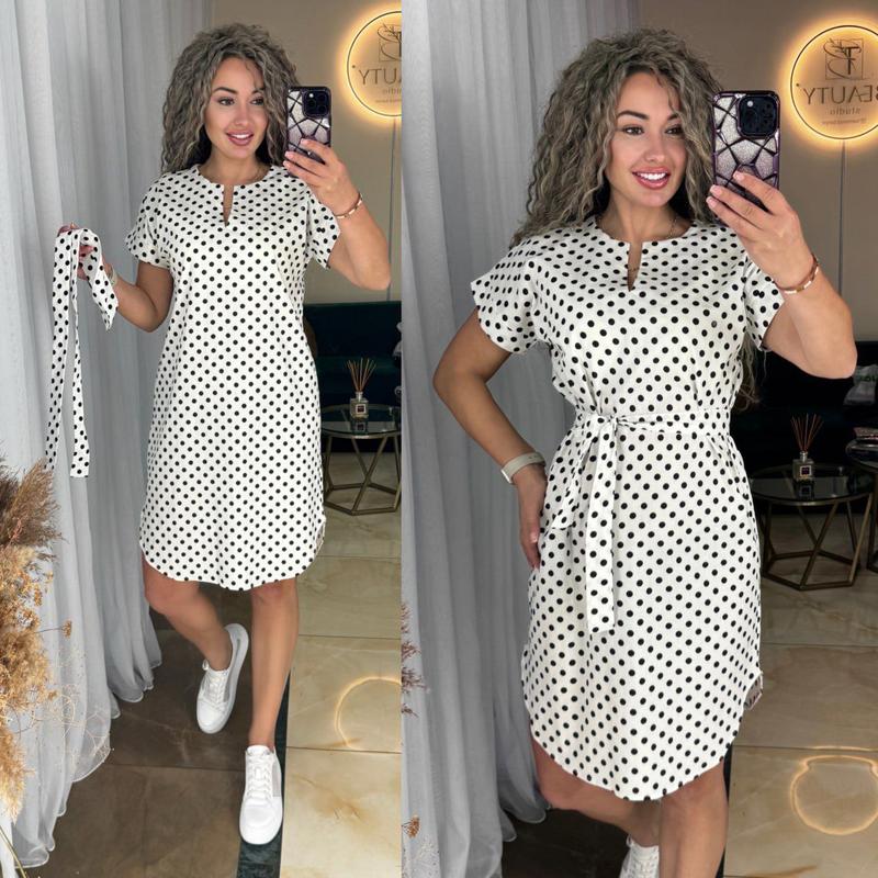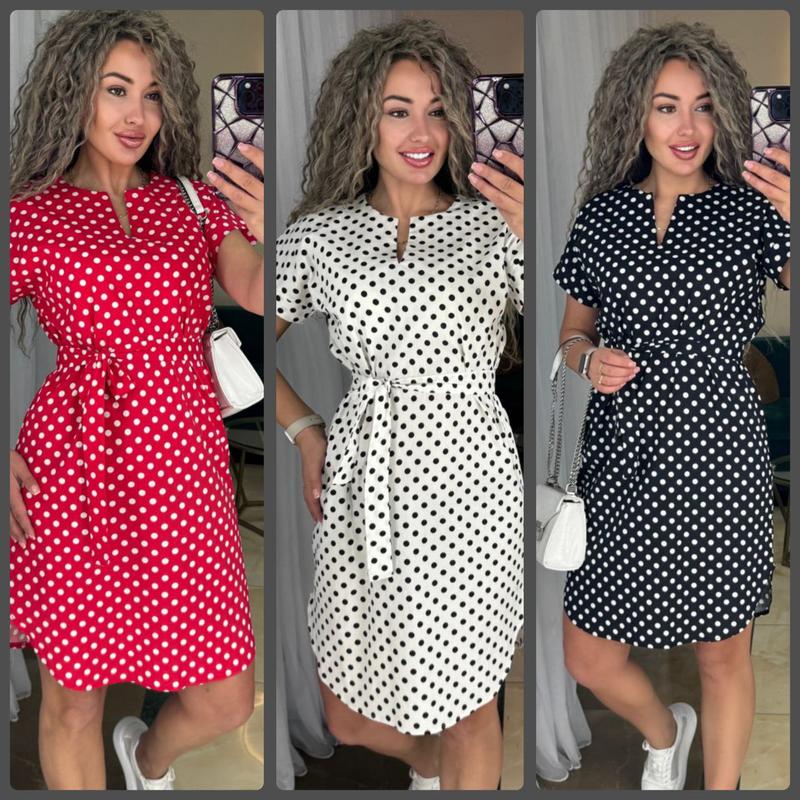 Опис: сукня з поясом, не приталена, розрізи по боках