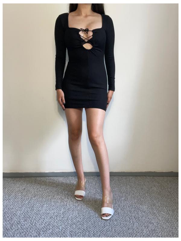 Міні сукня в рубчик з цікавим декольте Розмір ххс-хс Довжина 75 Плечі 34 Довжина рукава 56 ПОГ 36 ПОТ 29 ПОБ 35 Добре тягнеться Ціна 380 грн