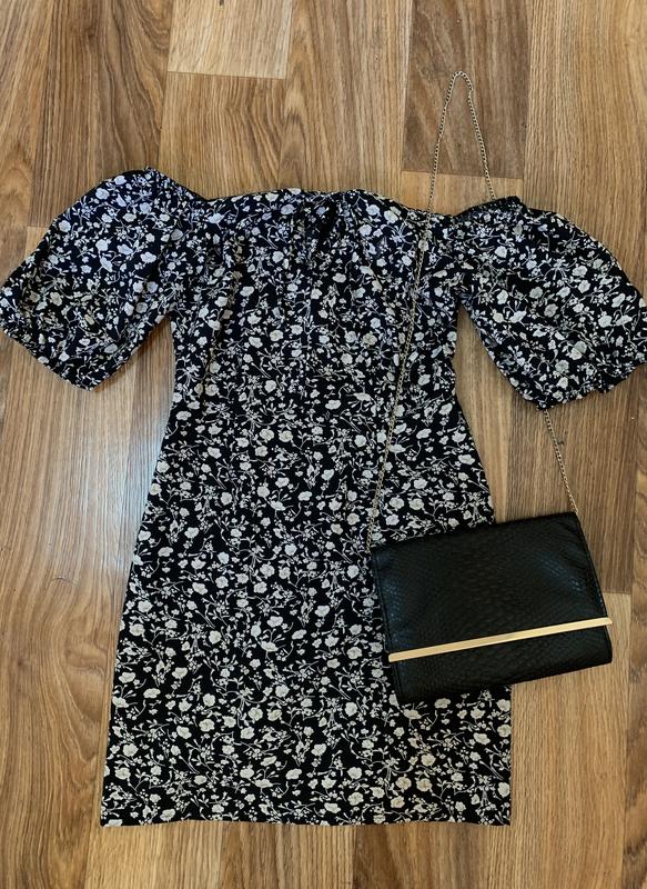 Міні сукня з рукавами воланами на плечі Розмір хs - s Довжина від грудей 70 Напівобх. груди 40 Напівобх. бедра 45 Рукав 25 Тканина трохи тягнеться Без дефектів