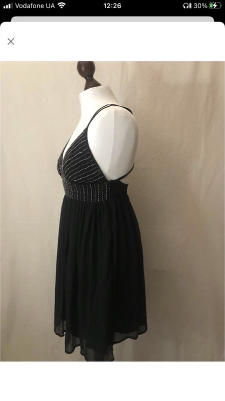 Легке тонке плаття з відкритою спиною, на бретелях. Ліф і пояс під грудьми розшитий бісером. Спідниця на підкладці, збоку блискавка. Заміри: під грудьми - 38, чашка на 2 розмір грудей. Довжина від пояса - 52 см