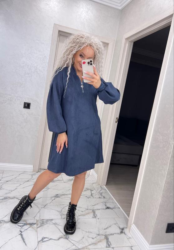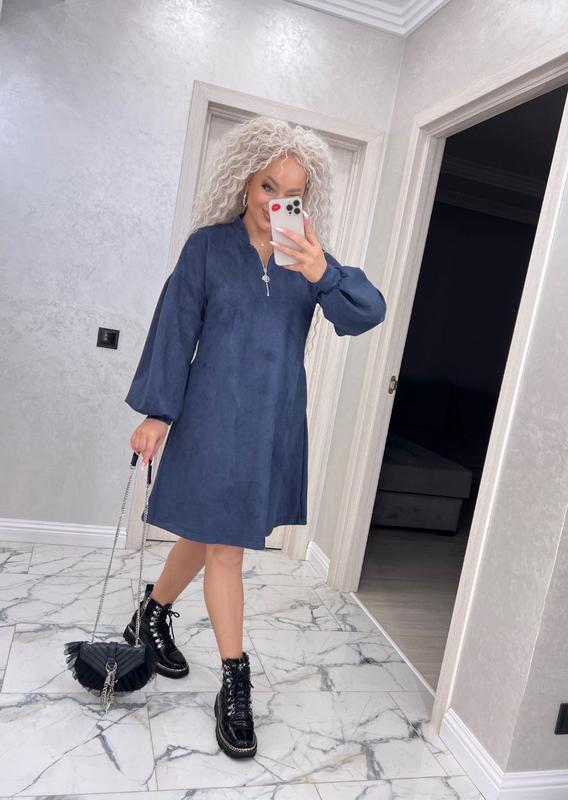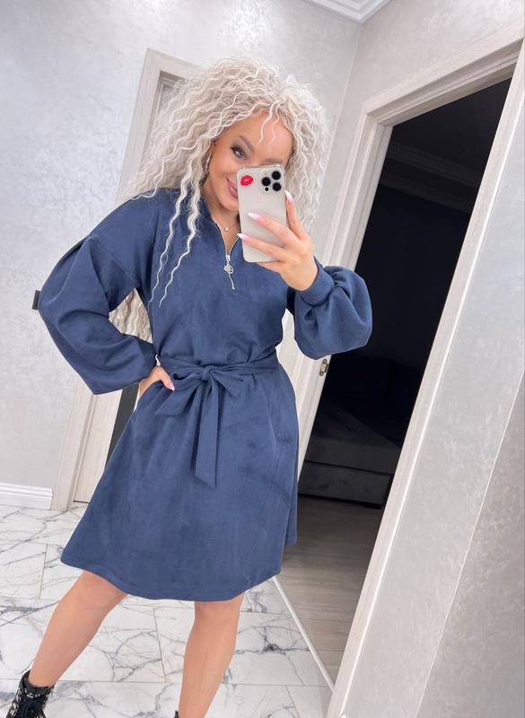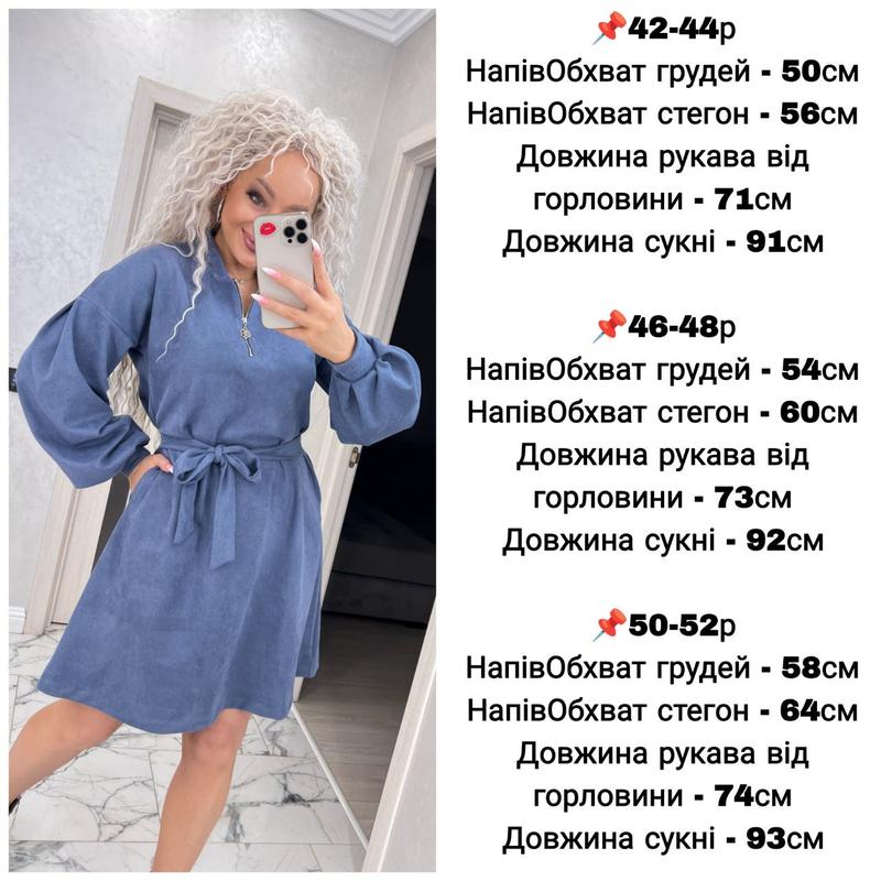 Сукня (плаття) жіноча коротка з поясом замша 42-52 джинс (світло-синя), мокко (бежево-коричнева), темно-синя