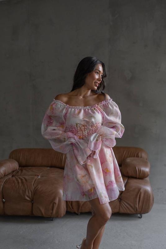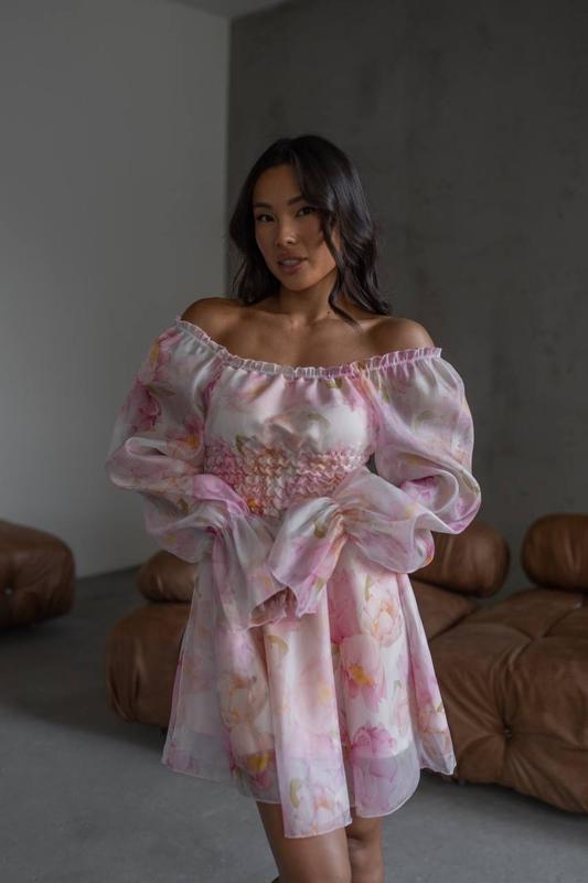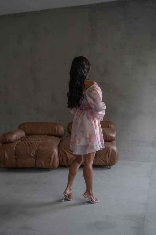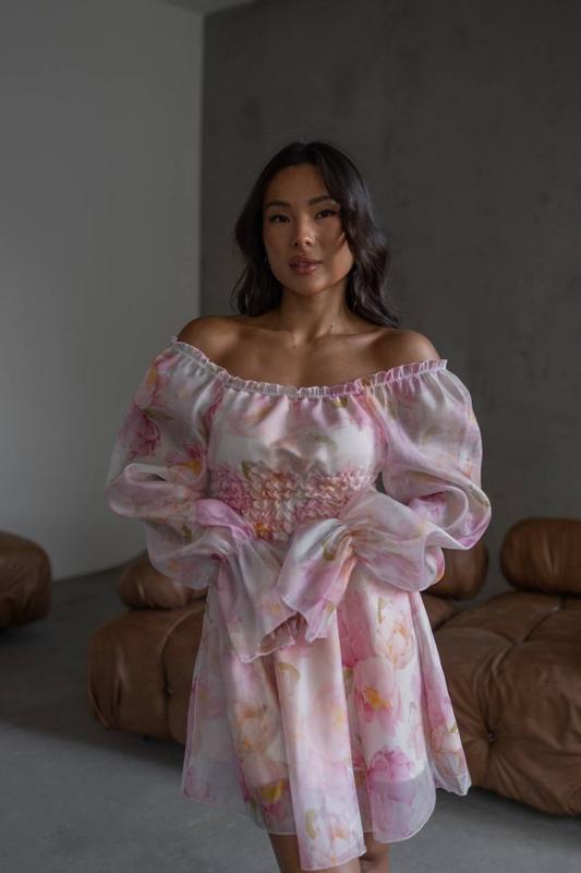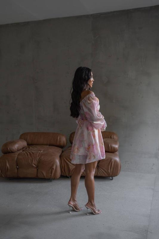 Тканина : органза Принт. Турецького виробництва. підкладка - софт-шовк. Талія на гумці- мʼяко сідає по фігурі. Довжина 86 см.