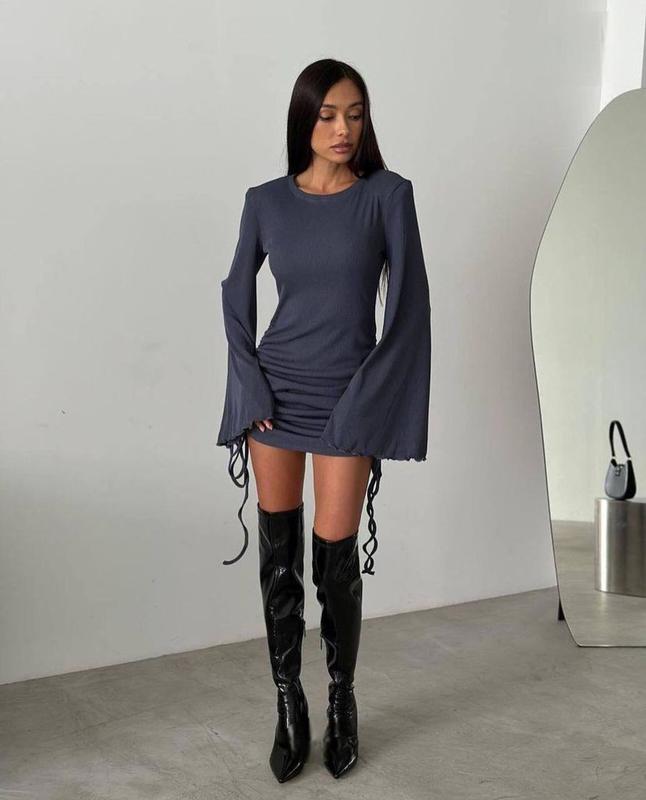 Очень красивое и привлекательное трикотажное платье в рубчик,кулиска по боковому шву регулирует длину платья