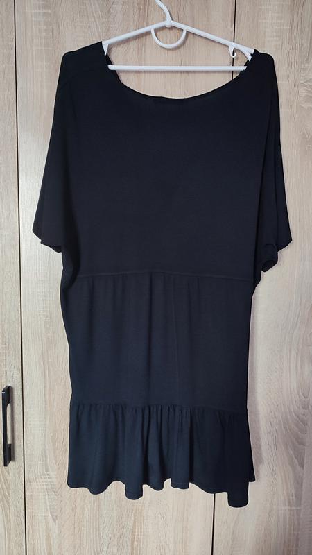 Гарненька ярусна нова сукня. Колір насичений чорний. V-образний виріз. Красива, стильна, трикотажна, натуральна, фірмова та якісна. Заміри:ПОГ 58ПОС 62довжина 88Виробник Англія