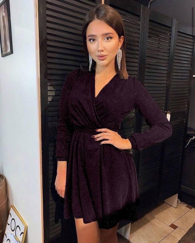 Сукня жіноча коротка міні на запах блискуча з поясом срібна бордова чорна нарядна святкова...