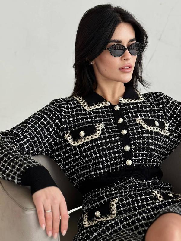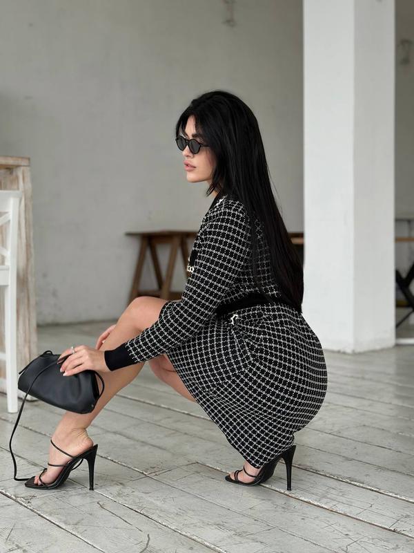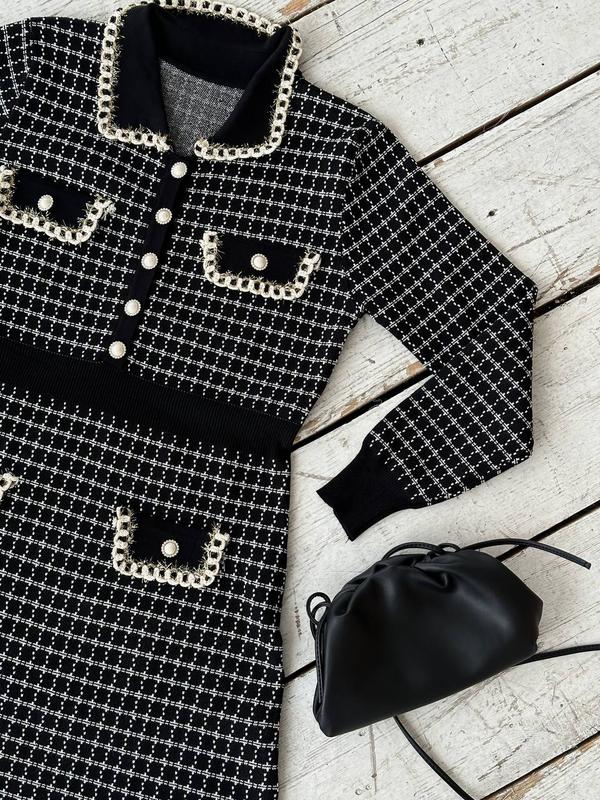 Лаконічна чорна-біла сукня з перлиною обробкою, акцентними деталями та витонченими гудзиками🤍Мод 2547Розмір: універсал с/мТканина: твід