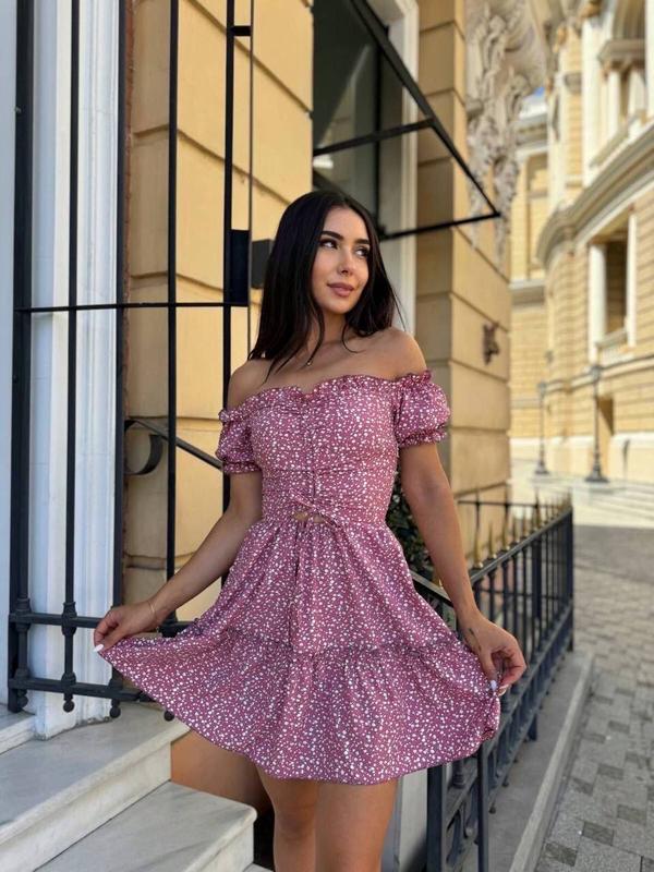 Жіноча літня міні коротка сукня коротким рукавом софт квітковий принт