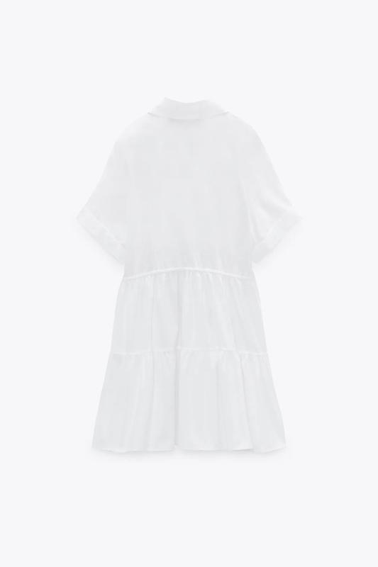 Коротке плаття з тканини оксфорд Zara Коротке плаття з вирізом і короткими рукавами з вилогами. еластичний пояс на зав'язках. застібка на гудзики в стилі поло. розміри XS S M L XL Склад: 100% Бавовна