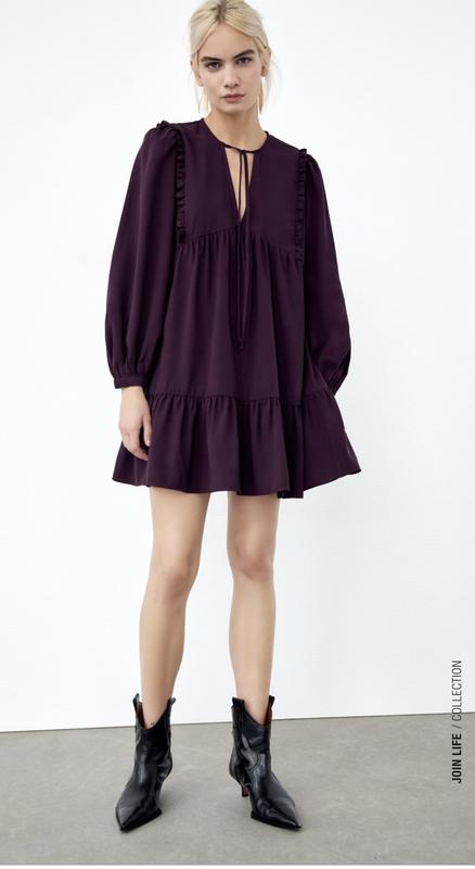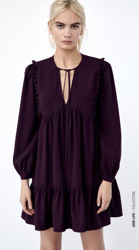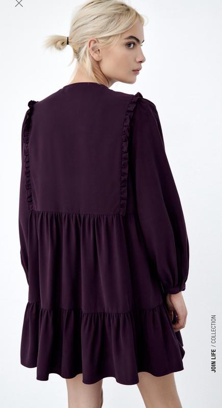 Трендовое мини платье baby doll от zara с пышными рукавами и рюшами ярусное стильна...