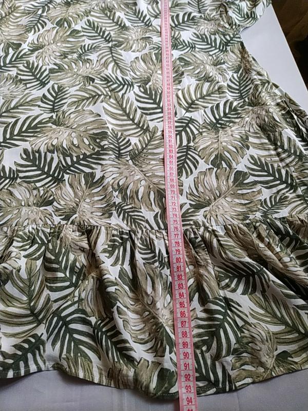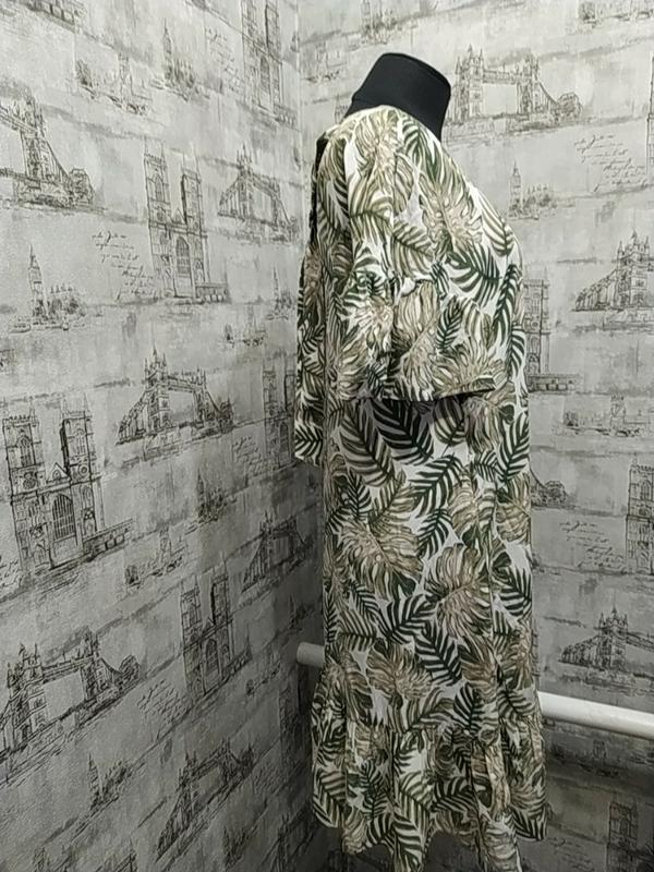 Зелене з листочками монстери сукня з кишенями, з красиві рукавом, дуже м'яке і легке, внизу рюшу