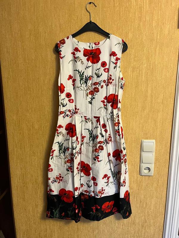 Яскравий дизайнерський сарафан із натуральної тканини з квітковим принтом, розмір 38