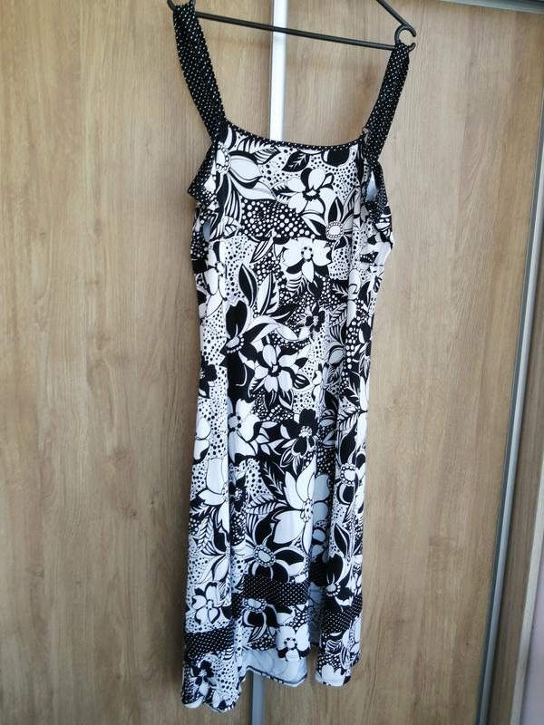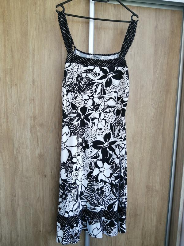 Стильний сарафан/сукня/плаття в чорно-білих кольорах у квітковий принт в комбінації з горошком від відомого британського бренду Per Una компанії Marks and Spencer.