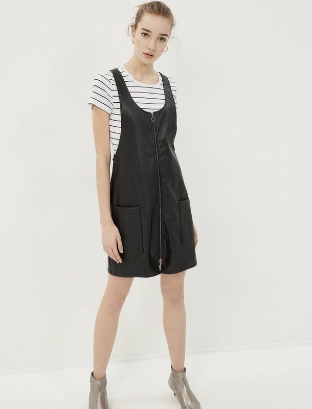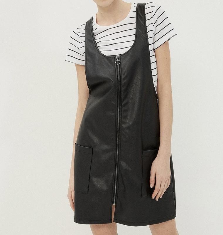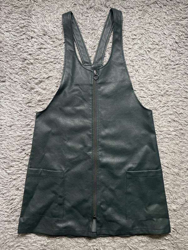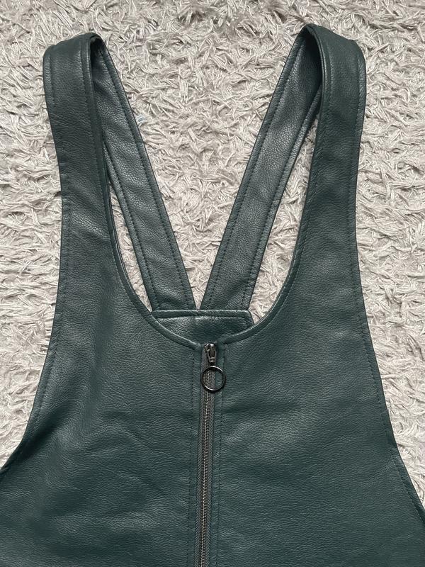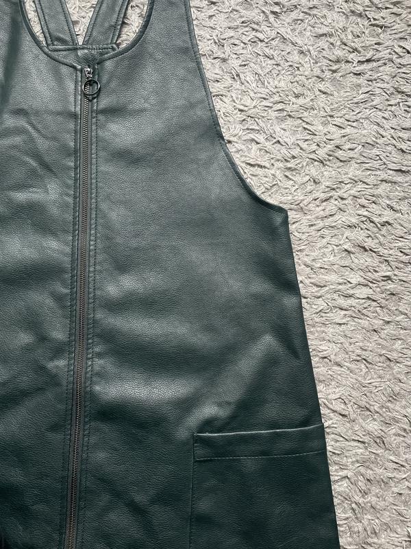 Сарафан новий з екошкіри. Підкладка- віскоза. Без нюансів. Колір темно зелений.