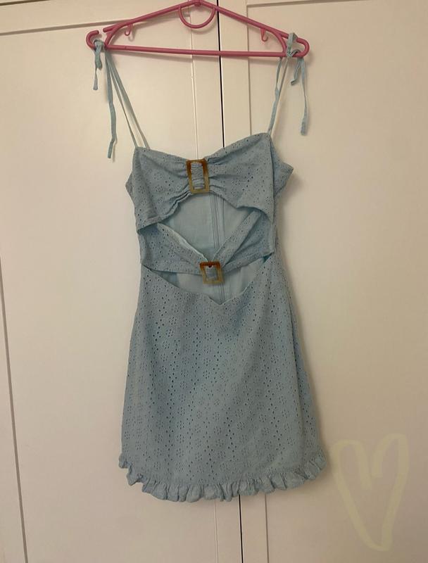 Сарафан из прошвы,голубое платье легкое летнее,с разрезом,романтическое,легкое,короткое
