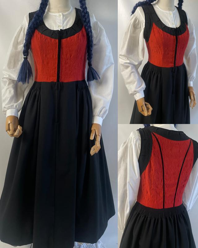 Вінтажний сарафан з чистої вовни від бренду, що спеціалізується на класичних сарафанах з Австрії (така цікава етикетка😊)Верх сарафану червоного кольору на застібках, спідниця пишна з кишенею чорного кольору.Чудово підійде під етнічні та містичні образи🌿🌙🖤Склад: 100 % вовна Заміри:ПОГ 46/48 смПОТ 38 смПОБ вільно довжина 120 см