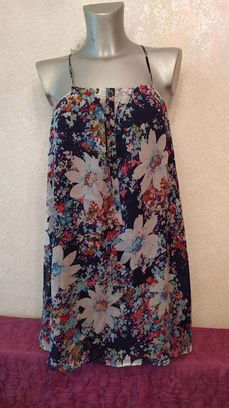 Легке гарне широке сукні з натурального шовку, на підкладці. З квітковим принтом, нове. Розмір вказано Євро -S Довжина від плеча - 82 см Довжина по боковому шву - 62 см ПОГ - 45 см ПОБІДИ - 55 см