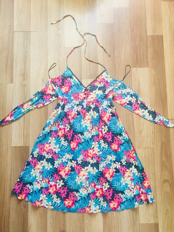 Сарафан складу віскоза, дуже легкий і приємний до тіла, ззаду відкрита спина і актуальні в цьому сезоні зав'язки, стан нової речі