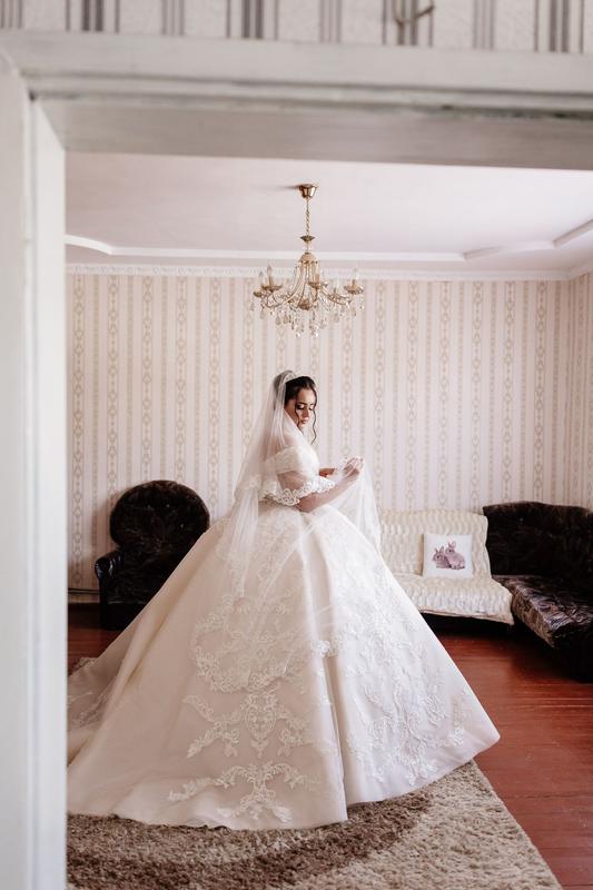 Розкішна весільна сукня розшита мереживом і бісером вручну! довгий шлейф,додає елегантності, його можна також застібнути догори для зручності.