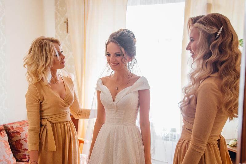 Плаття розмір s На ріст 159 см + каблук 10 см Рукави можуть бути опущені а можуть триматися на плечах ( плаття не сковує рухів , зручне ) Одягалося один раз . Було на професійні хімчистці . У наборі є кільце .