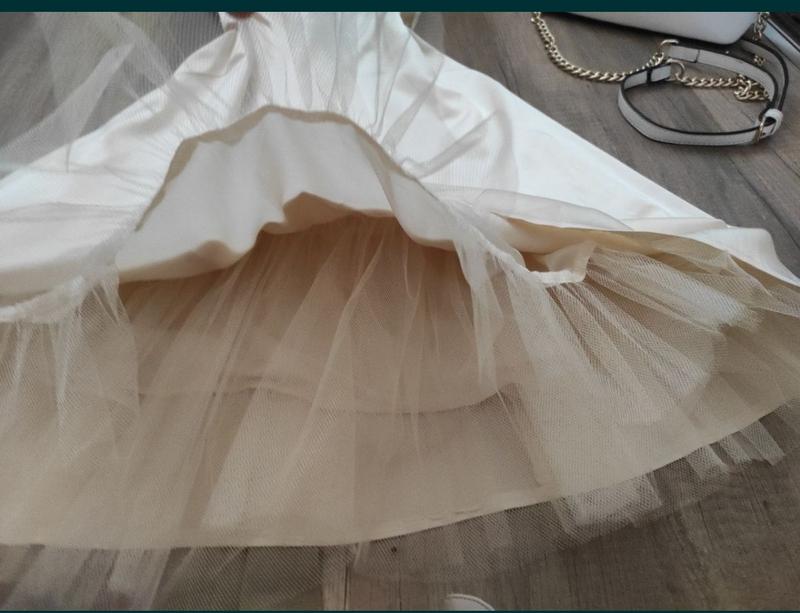 Дуже ніжне атласне плаття з фатіновими підюбниками.Плаття міді . Одівала один раз. Дефектів немає .