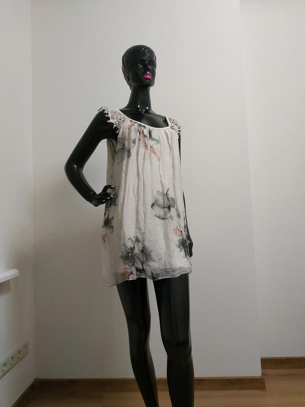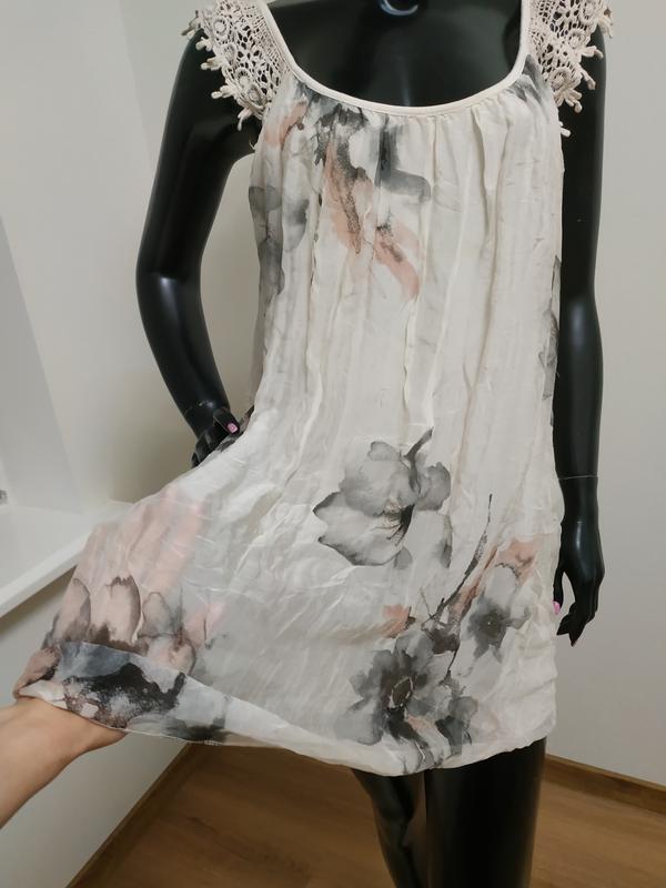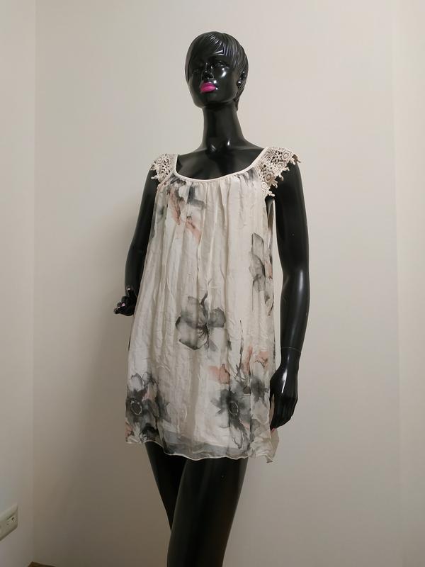 Легенька туніка з натуральної тканини, шовк і віскоза. Верхній шар повітряний, леткий, підкладка з гладкого трикотажу, до тіла дуже приємний. Вільний фасон, підійде на різні типи і розміри фігур))Пишіть, про ціну домовимося 😉