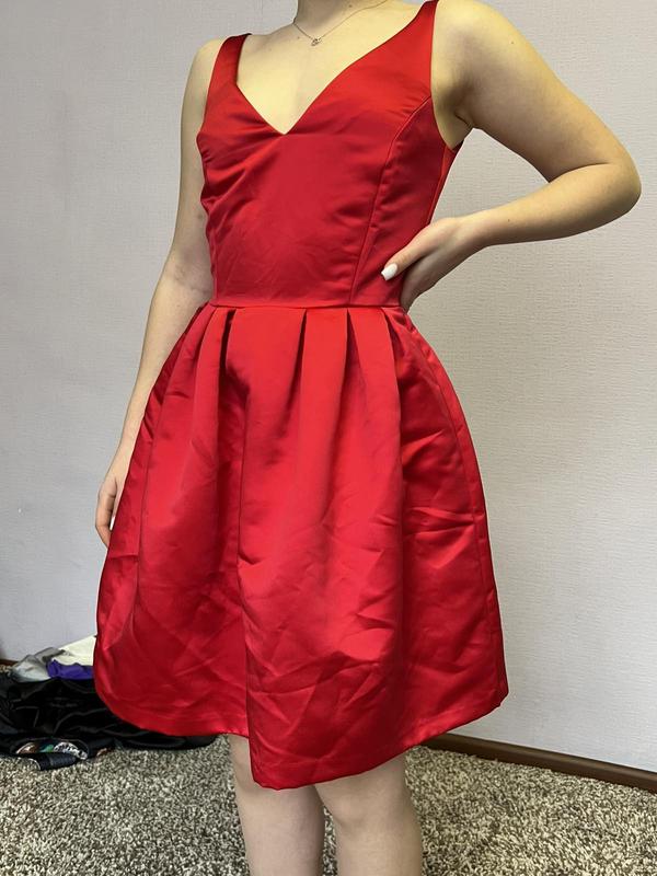 якісне пошиття, плаття червоного кольору, якісний атлас, привезено з Італії, ПОТалії 31см, довжина спідниці 45, ПОГ 40, висота від плеча до талії 38. Тканина не тягнеться