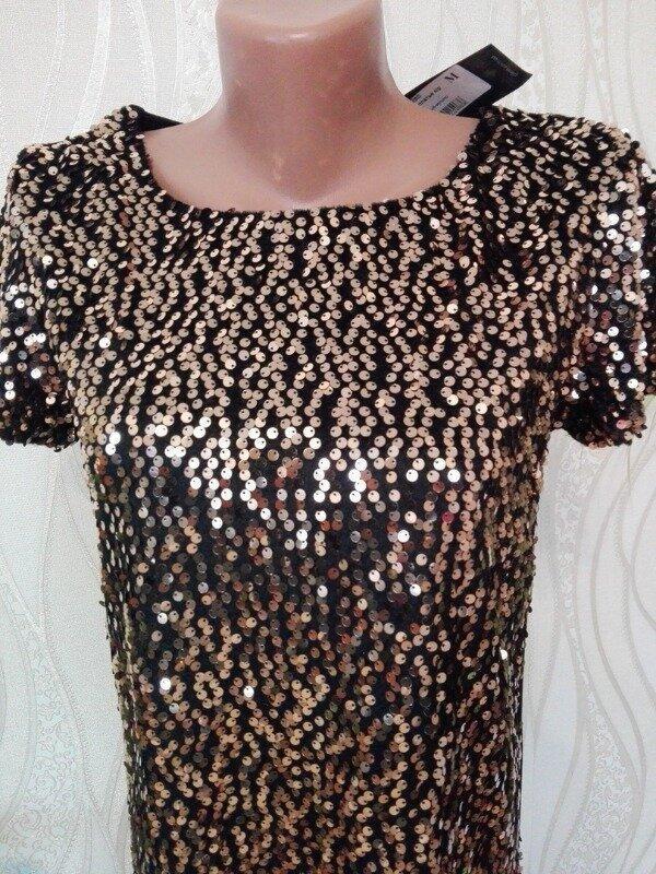 Склад: креп-дайвінг + велюр пайетка Розмір S в грудях -43 тягнеться до 47см в талії 41, в стегнах 47 + теж тягнеться,довжина від плеча спереду-84см Зріст моделі - 171 см. параметри: 92-66-95. На моделі розмір S