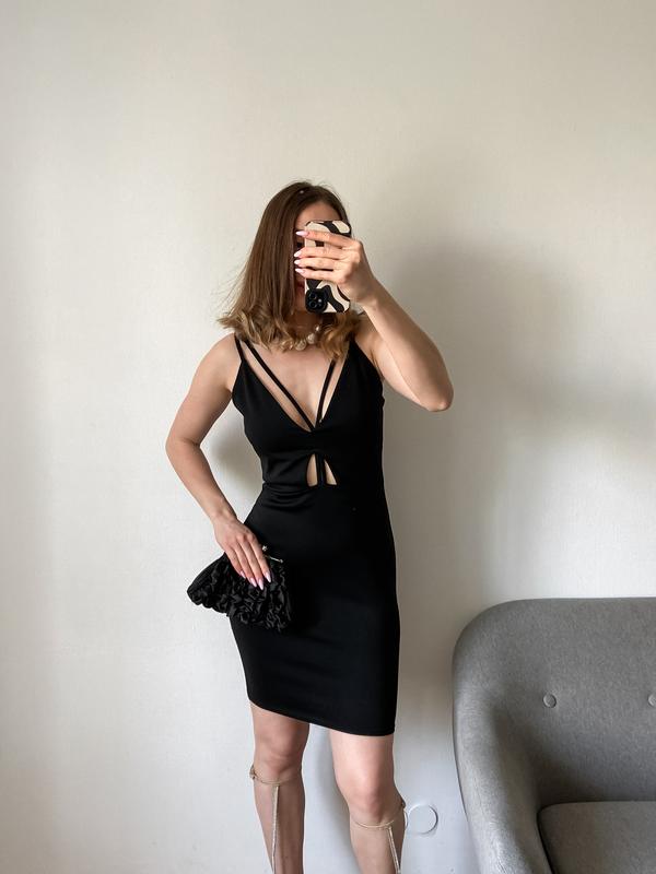 Вечірня чорна сукня із v-вирізом