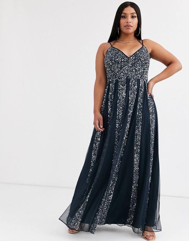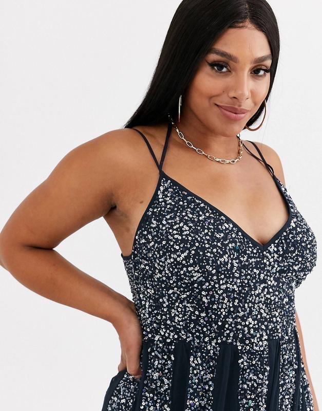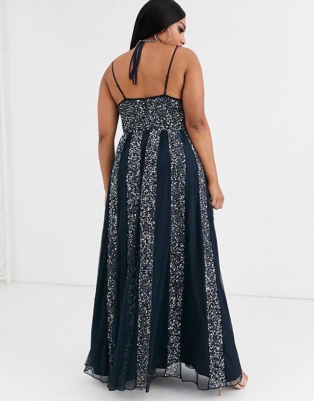 Сетчатое платье макси на бретелях ASOS DESIGN Curve украшенное вставками из пайетокUk 22Длина 160Пог 62-64Пот 52-54Поб свободно