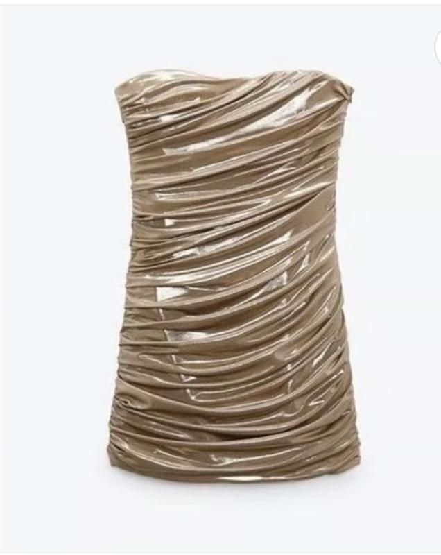 Брендова сукня золота блискуча бодікон зі збірками zara відкриті плечі