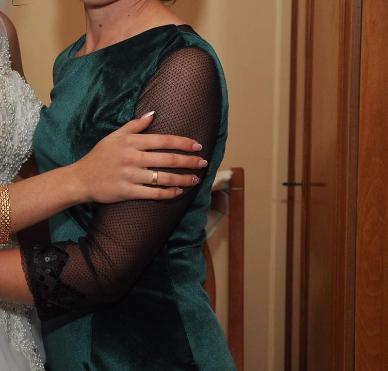 Жіноча сукня оксамиту, 44р стан нової. Одягнута один раз. На спині гудзики. Гарно лягає по фігурі, шила на замовлення.