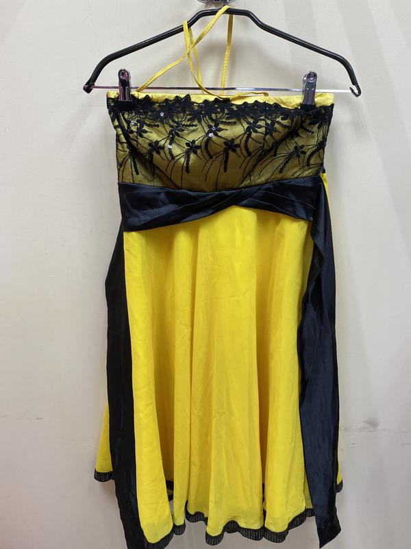 Дуже красиве яскраве ошатне плаття. З нюансів - є маленька дірочка - в шкарпетці не помітна, можна пришити палетки 🤷🏻♀️А так в цілому - сукня у відмінному стані! Одягалася один раз на захід і все! Заміри: ПОГ - 39 см ПОТ - 35 см (зав'язується ззаду на поясок) Стегна - вільно Довжина сукні від грудей - 77 см