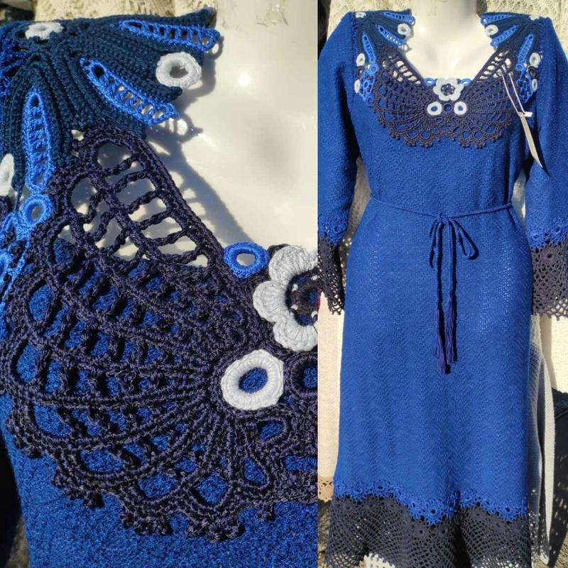 Ошатне плаття , якість супер .Синє плаття пов'язано на машинці і з обробкою ручної роботи , розмір 46 розмір. 1200 гривень. Виглядає дуже дорого і салидно. Поспішайте купити. І дивіться інші мої оголошення.