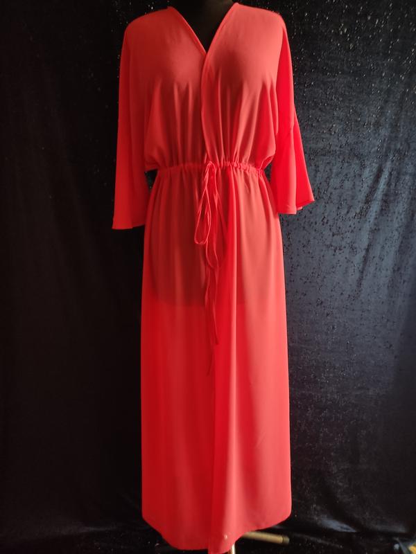 Пляжна халат туніка з шифону з рукавом крильце,халатик універсальний ,розмір регулюється пояском,колір кораловий
