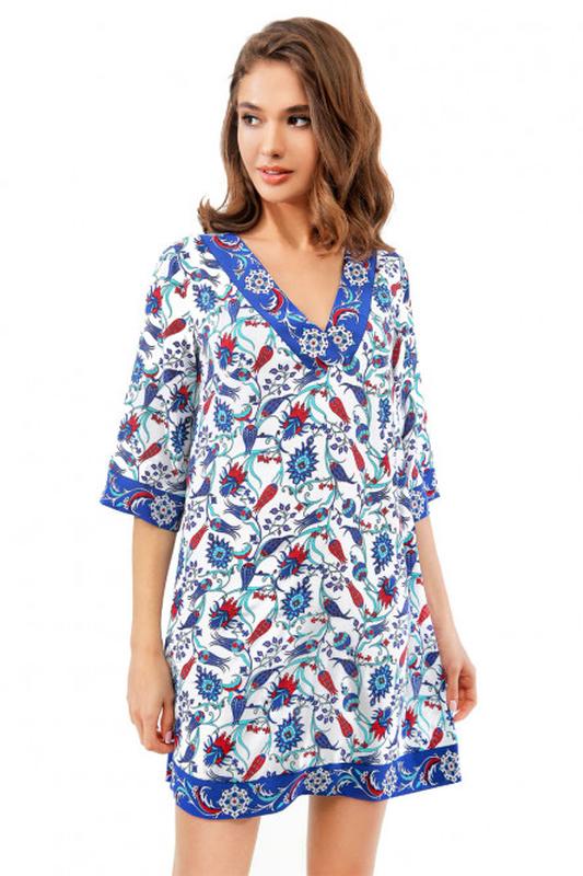 Очень красивая шифоновая туника в идеальном состоянии. Размер указан 42, подойдет от хс до м. Замеры на фото.