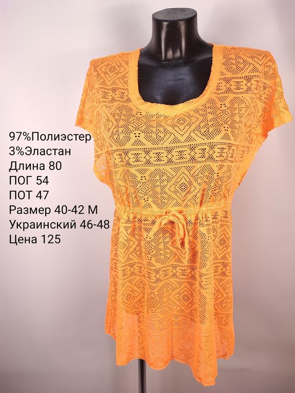 І на пляжі і у басейну ви зможете продемонструвати хорошу фігуру в цій туніці. Оригінальний крій забезпечують комфорт і створює привабливий силует. Туніку також можна використовувати в якості повітряної блузи, надівши під неї топ або корсаж, які будуть злегка видно крізь напівпрозорий матеріал.