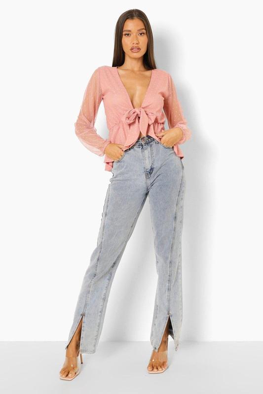 Блуза -топ на зав'язці спереду в горошок ****** Рожева
