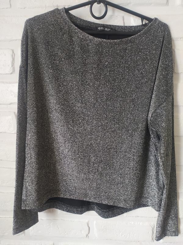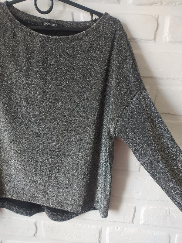 дуже стильна, спущене плече, блискуча, декілька раз одягнена, є пару затяжок, не впливають на вид