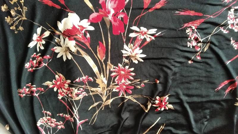 Стильна,із сучасним принтом. Розкльошена,рукав по низу-ярусний.На дотик подібна до шовку.ФОТО НА ТІЛІ НЕМАЄ. Довжина 80Завширш(пахви) 56Рукав-54 Річ нова,без паперової бірки -СТОК.