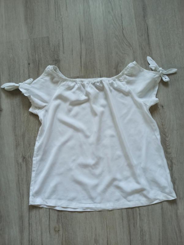 гарна біла літня блуза, довжина 62 рукав 18, п/ р 57, плечі відкриті.