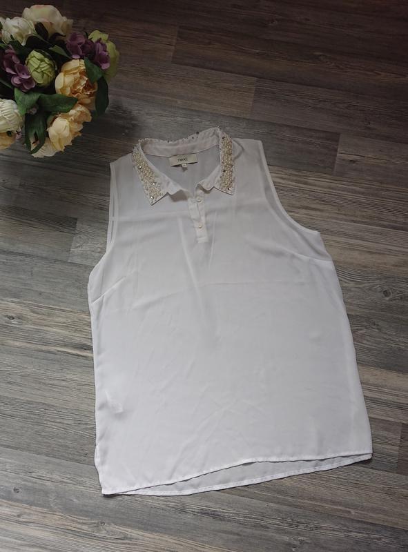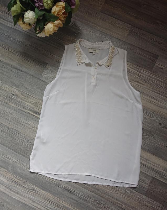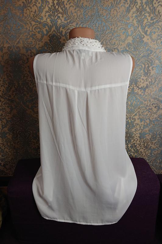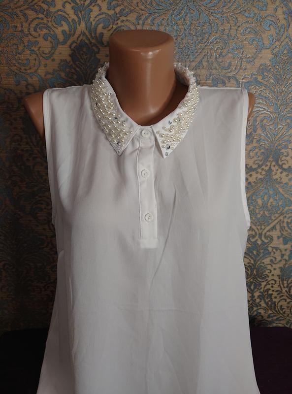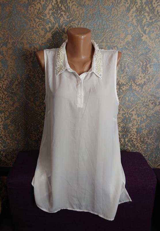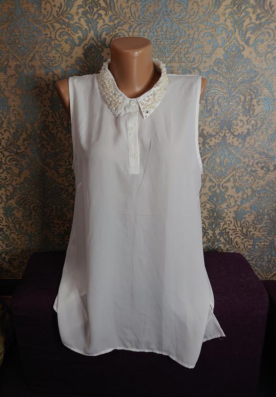 Красивая женская блуза с жемчугом на воротничке, состояние идеальноеРазмер наш 44 /46/48ЗамерыДлина 63/70Пог 53