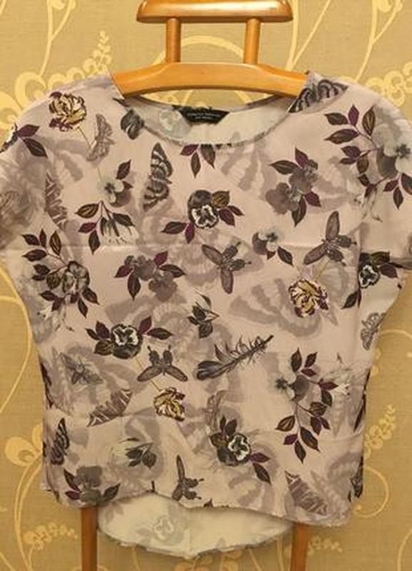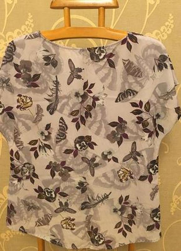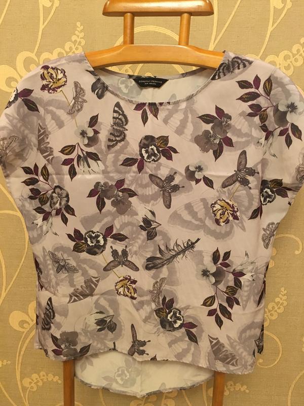 Пропоную до вашої уваги дуже красиву та стильну брендову блузку сірого кольору в різнобарвних кольорах, пір'ях і метеликах (у живу має набагато цікавіший вигляд). Фірма DOROTHY PERKINS. Розмір вказаний 14, крій злегка вільний. Склад: 100% поліестер. Нова. ПОГ-крій вільний..60, довжина блузки — 72. УВАГА!!! Під час купівлі три й більше речей —безсплатна доставка посилки Новою поштою. Вдалих покупок.
