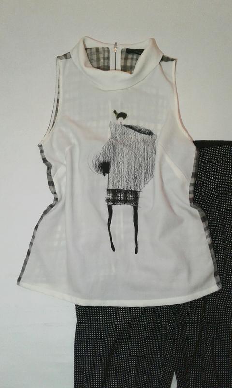 Класна, дуже цікава блузочка від ZARA ! Виглядає дуже стильно! Попереду білий креп, ззаду шифон в клітинку; застібається ззаду на блискавку. Стан нової речі, без дефектів. Розмір М. Довжина 59см, пог 45см