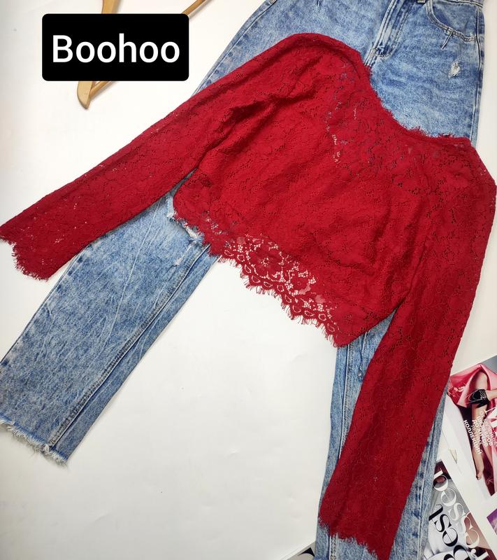 Блуза жіноча мереживна коротка червоного кольору від бренду boohoo l