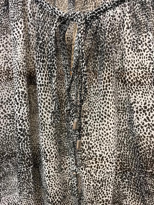 Пропоную до вашої уваги дуже красиву та стильну брендову блузку світлого кольору в чорних цятоках. Фірма DOROTHY PERKINS. Розмір вказаний 10. Склад: 100% поліестер. Нова. ПОГ-крій злегка вільний...52, довжина — 65, довжина рукава від коміра — 47, низом блузки йде гумка. УВАГА!!! Під час купівлі три й більше речей —безсплатна доставка посилки Новою поштою. Вдалих покупок.